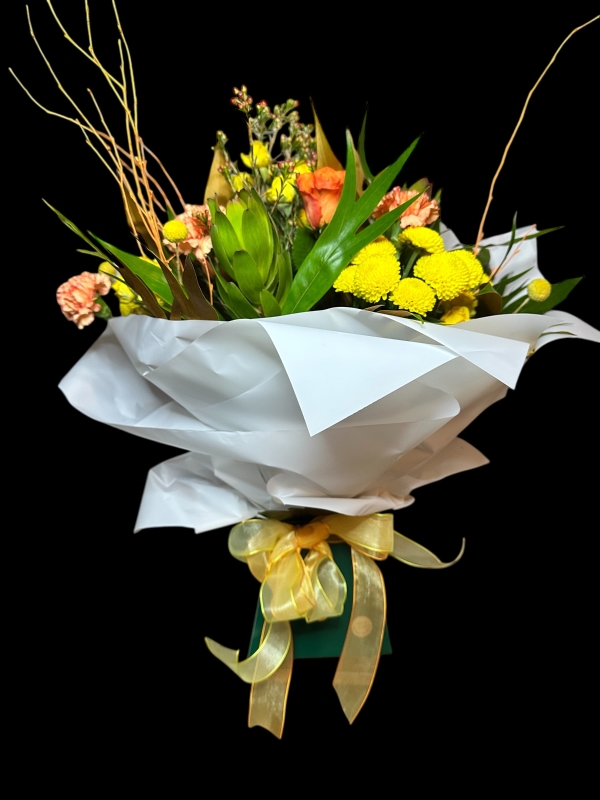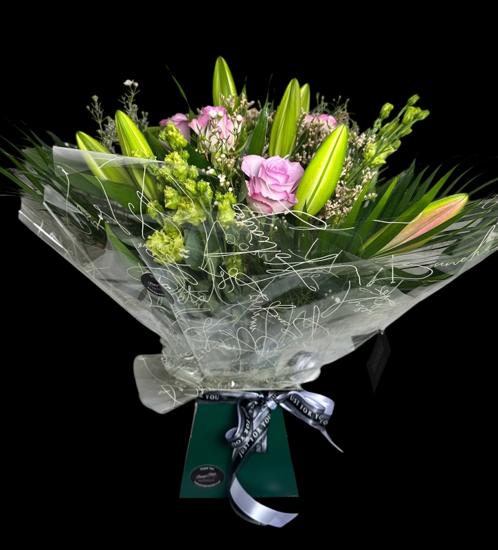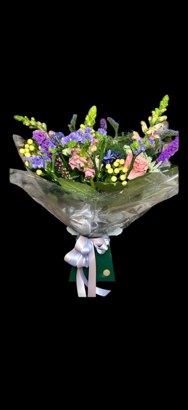 Classic gift flowers for all occasions. Florist choice flowers in the colour way you select, hand tied and presented in a gift box with a bubble of water.